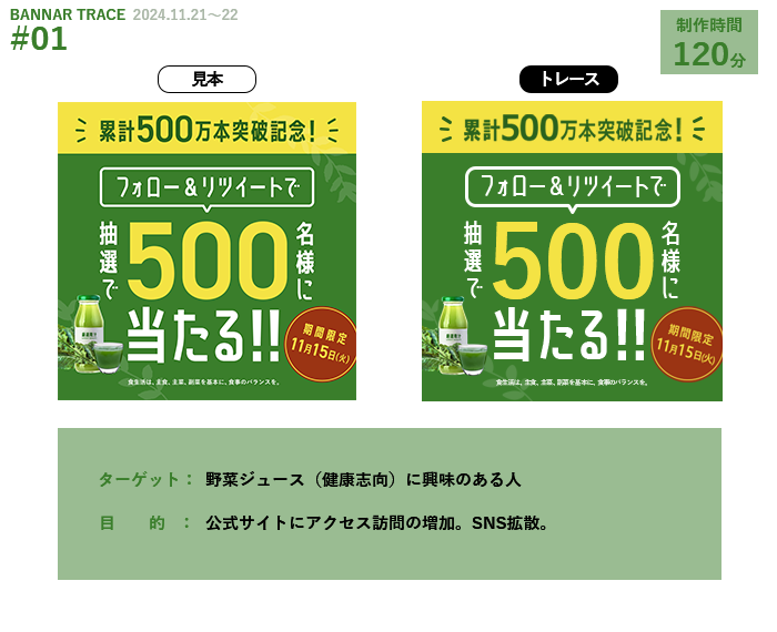 ・ターゲット:野菜ジュースに興味のある方(健康志向がある)