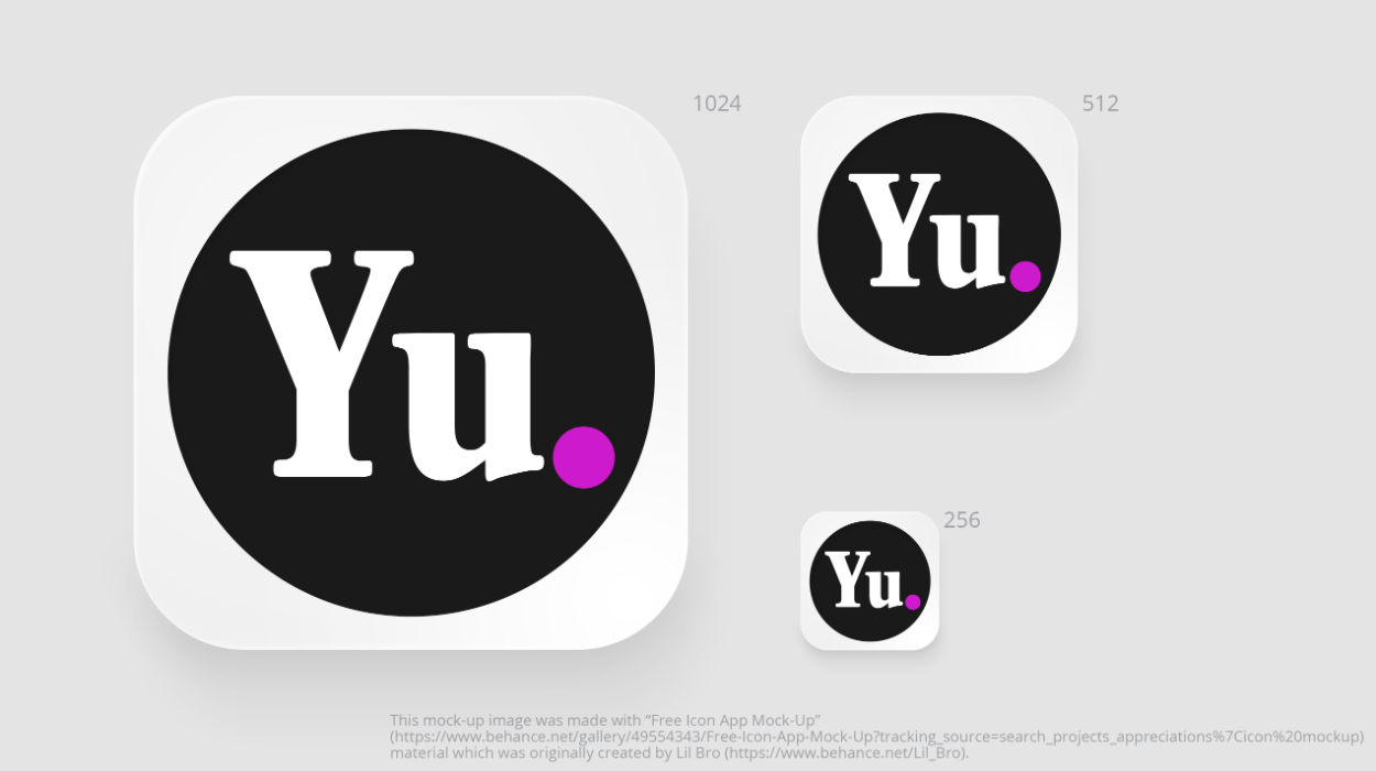 ポートフォリオサイトで使った色(濃いめのピンク(#cc00cc)やブラック(#1a1a1a))も用いつつ作成。「Yu」部分のフォントはJansonURW Boldを使用した。