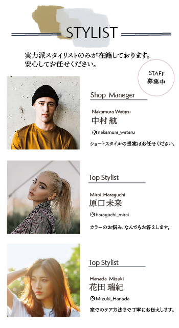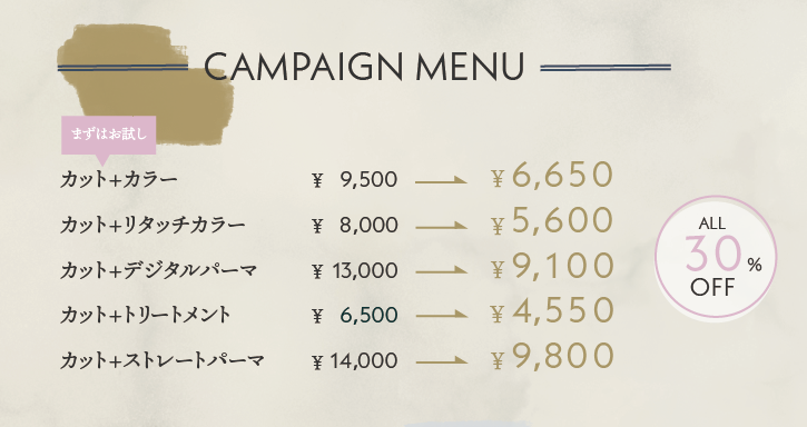 ターゲット▶少し高めの料金設定であっても確かな腕のスタイリストに担当してもらいたい、 ヘアスタイルにこだわりのある方