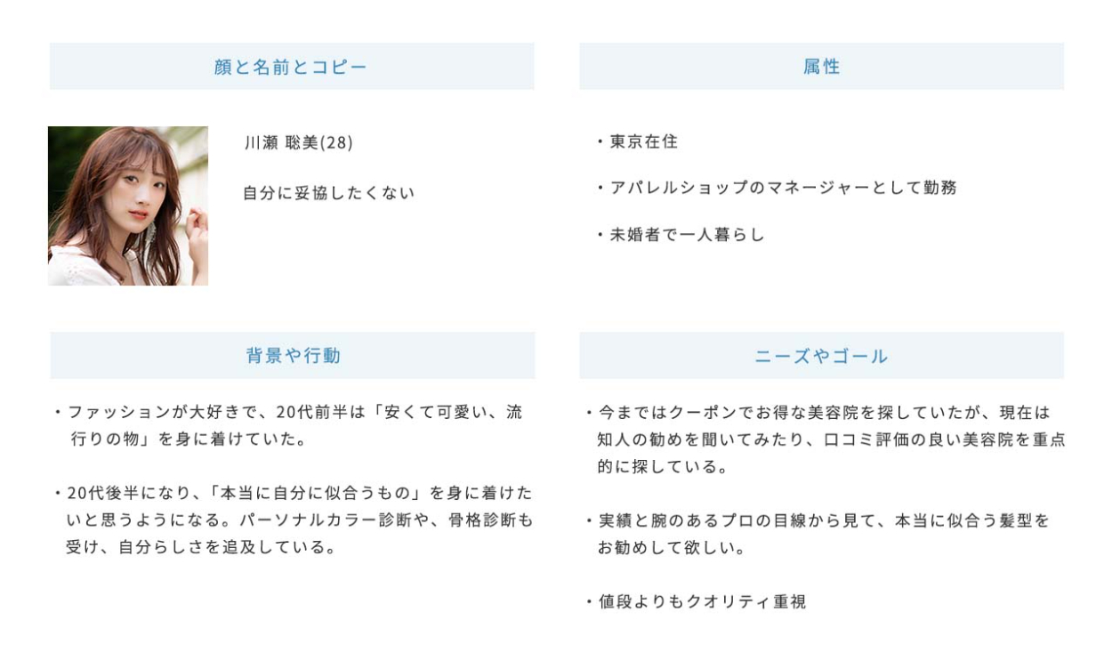 クライアントからの要件を元に、より詳細にターゲットを絞るため、ペルソナを設定しました。