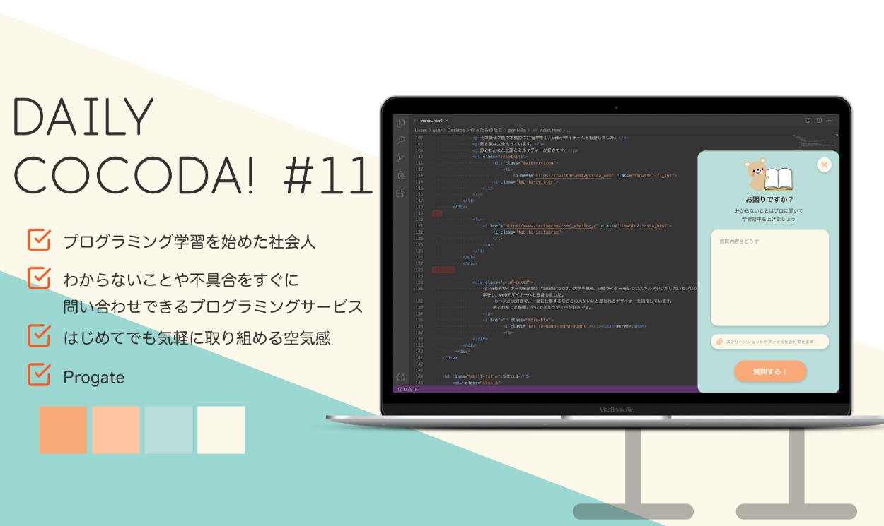 11日目はめずらしくwebの画面で、新しくプログラミングを始めた人用のお問い合わせ画面です。