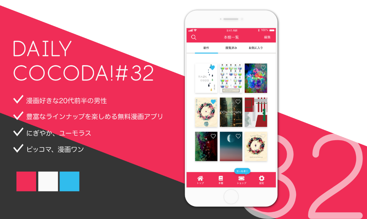 漫画アプリ、いろいろみてみると共通してメインカラーが鮮やかなのが特徴ですね。