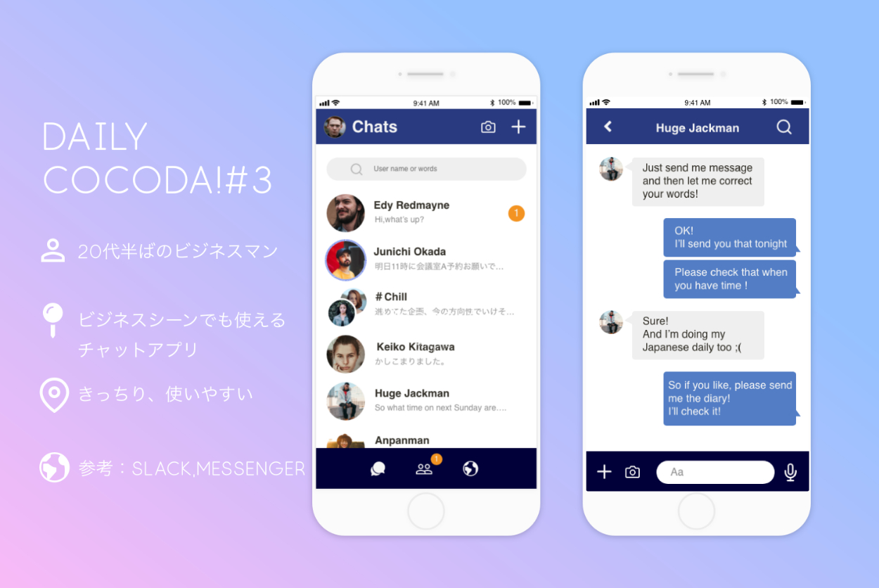 この日はビジネスマン向けのチャットアプリの画面でした。