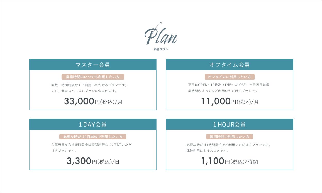 クライアントから渡されていたWFには料金プランはありませんでしたが、利用を具体的に検討できるように、料金プランのセクションを追加しました。