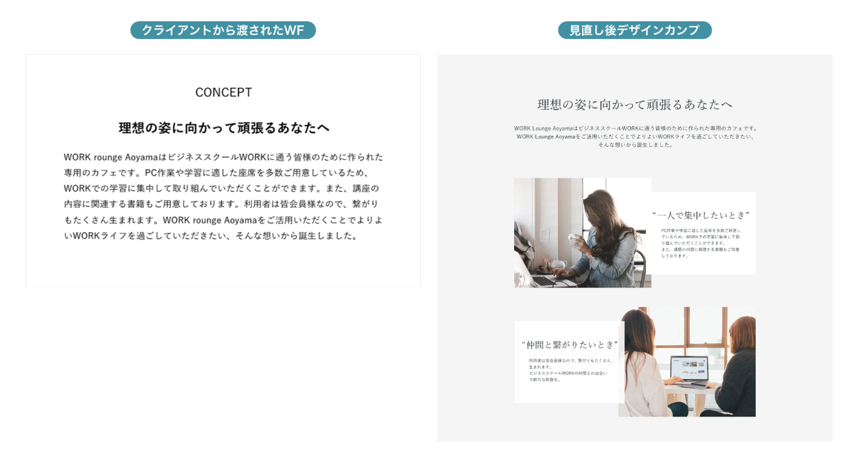 会員同士の繋がりが生まれる空間であることはコンセプトの文章内に記されており、ユーザーは文章を全文読まないとわからない構成になっていました。