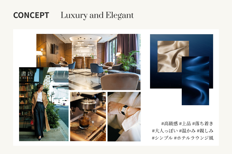 キャリアを大切にされる意識の高い女性を想像し、そういった女性たちが憧れるようなデザインとして、高級感がある落ち着いたホテルラウンジ風のイメージを目指しました。