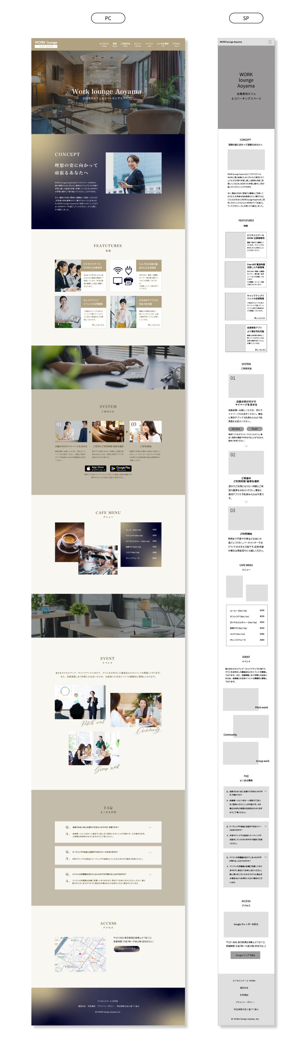 コワーキングプレース ・カフェLP制作(PCデザイン・SPワイヤー)