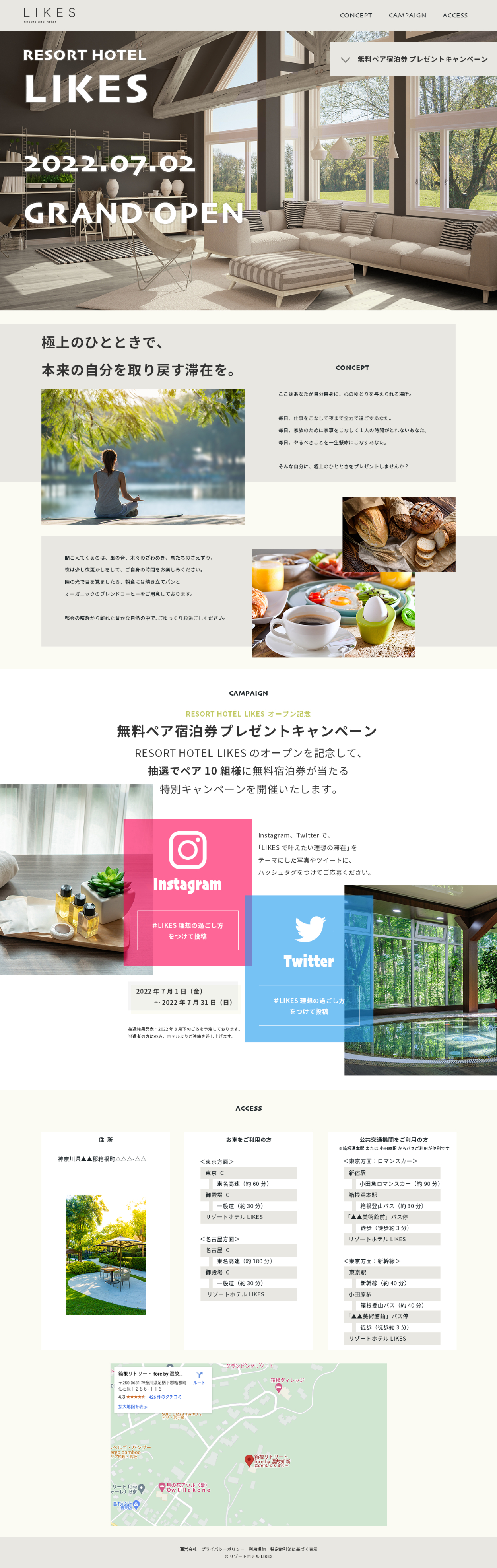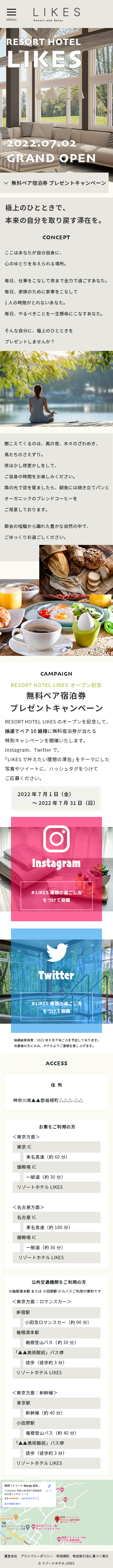 <演習課題>WebデザインLE2デザインドリル 架空ホテルHP(ps・sp)、バナー(twitter、instagram、GDN)