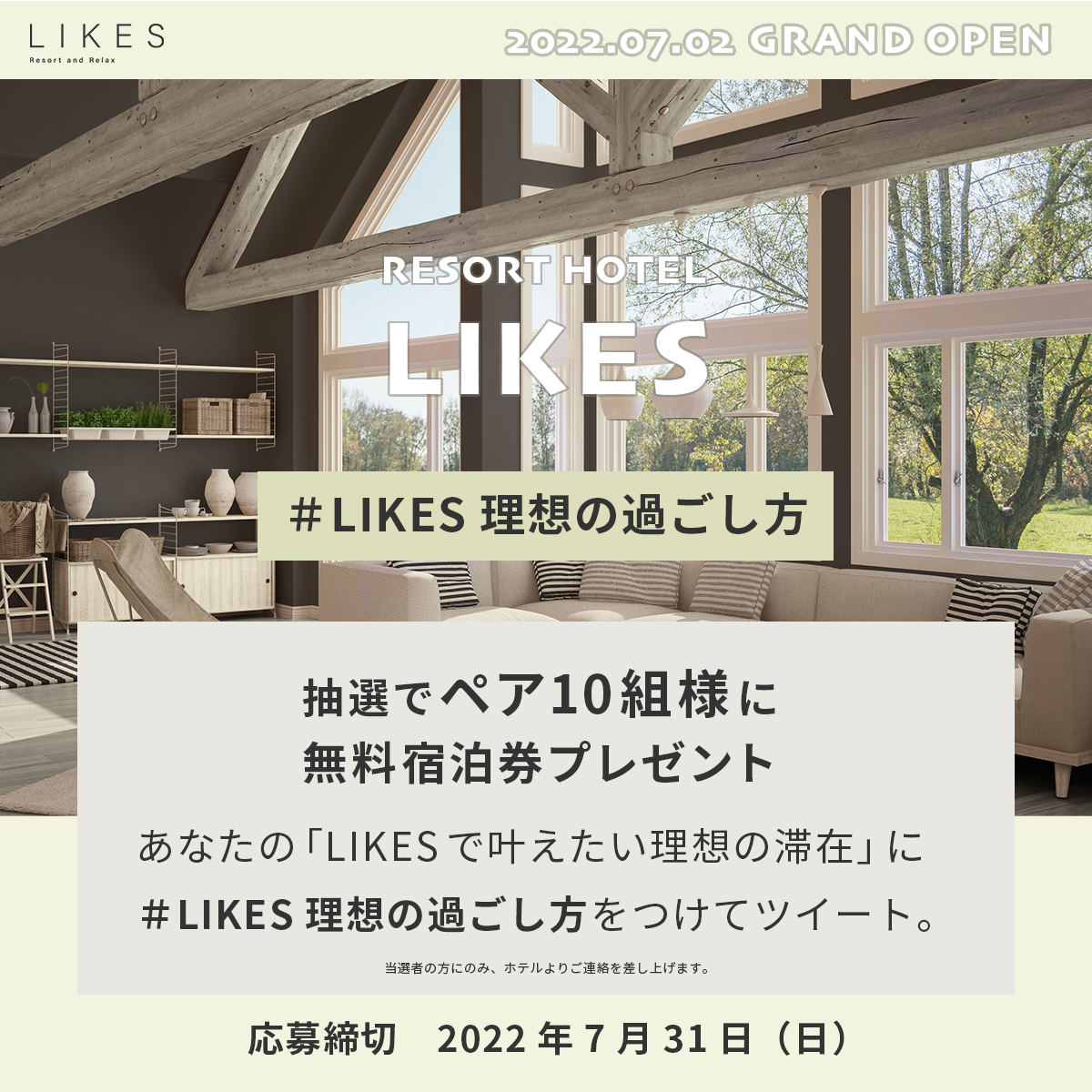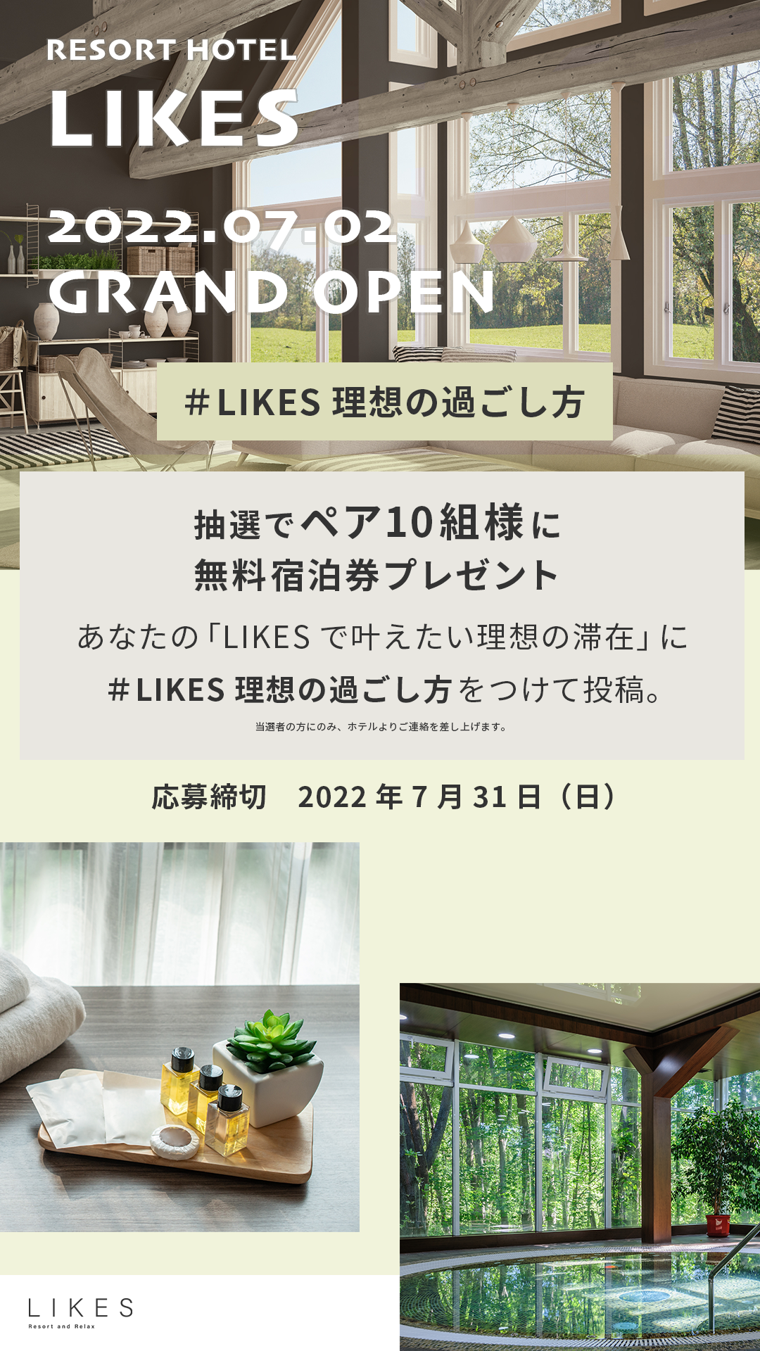 ②リゾートホテルなので落ち着いた雰囲気にし、プレゼントキャンペーンが目立つよう