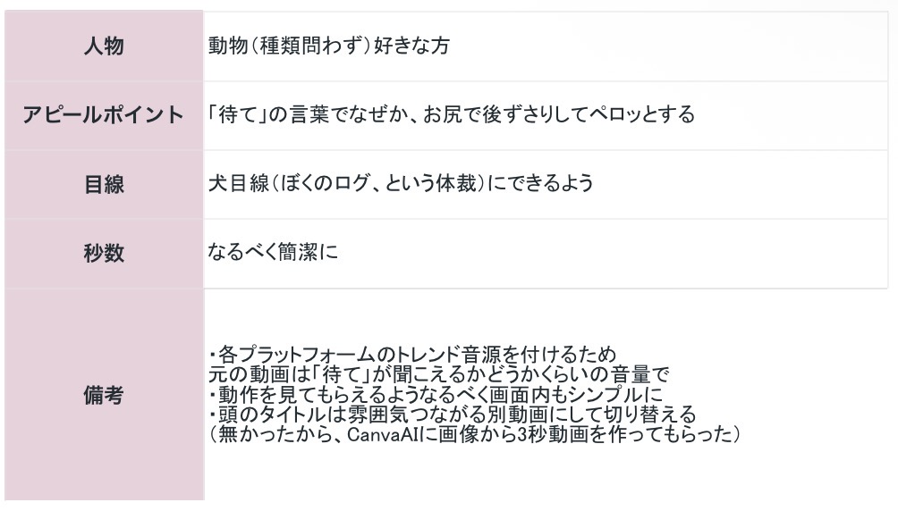 【自主制作】居候犬の日常 もかとん OVERVIEW 「待て」 -制作の流れ-・かねてより1番身近な人から作ってみてほしいと要望あり、短尺のペット動画制作に取り組む・SNS動画制作を学び始めてから初めての制作・Canva、Canva AI(無料の範囲)使用・制作意図-制作期間-4日ほど(1日の作業時間:30分-1時間半) WEBSITE