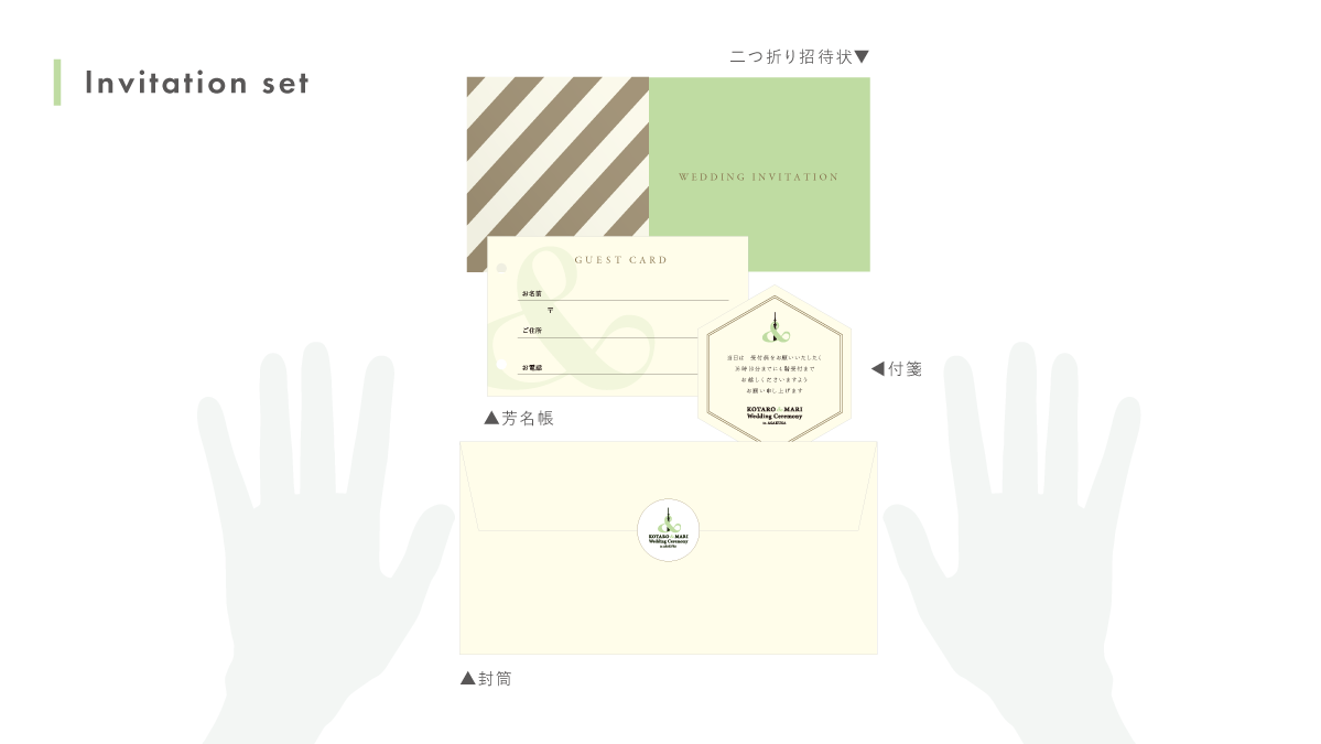 ・招待状(二つ折り)※予算の都合上既製品を使用