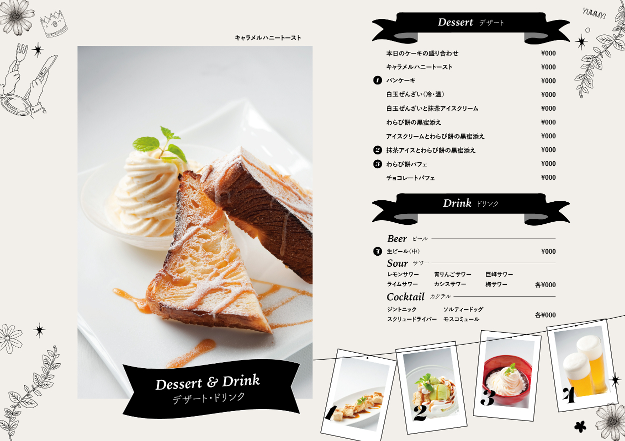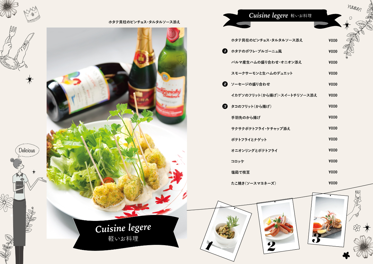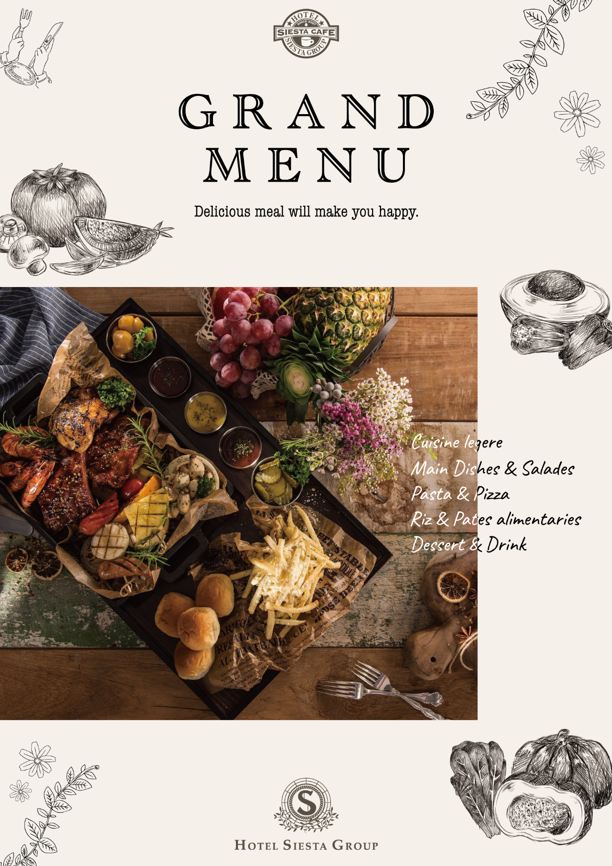 宿泊ホテルのグランドメニューPOPです。 リニューアルにあたり、ナチュラルで洗練された雰囲気が伝わるよう作成しました。