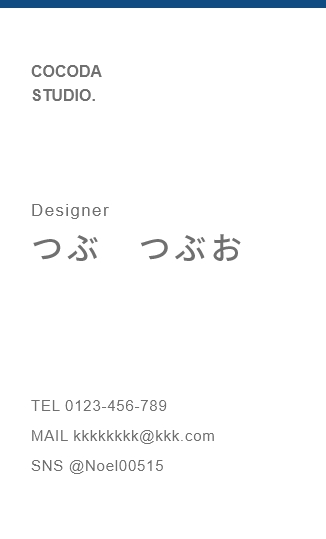 工夫点・気づき:とにかくシンプルを心掛け、アクセントとして名刺上部に今年のトレンドカラーのクラシックブルーを取り入れました。