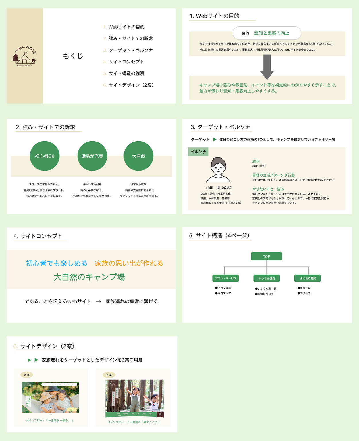 ・TOPページコーディング、キャンプ場内の案内マップ作成、提案資料作成