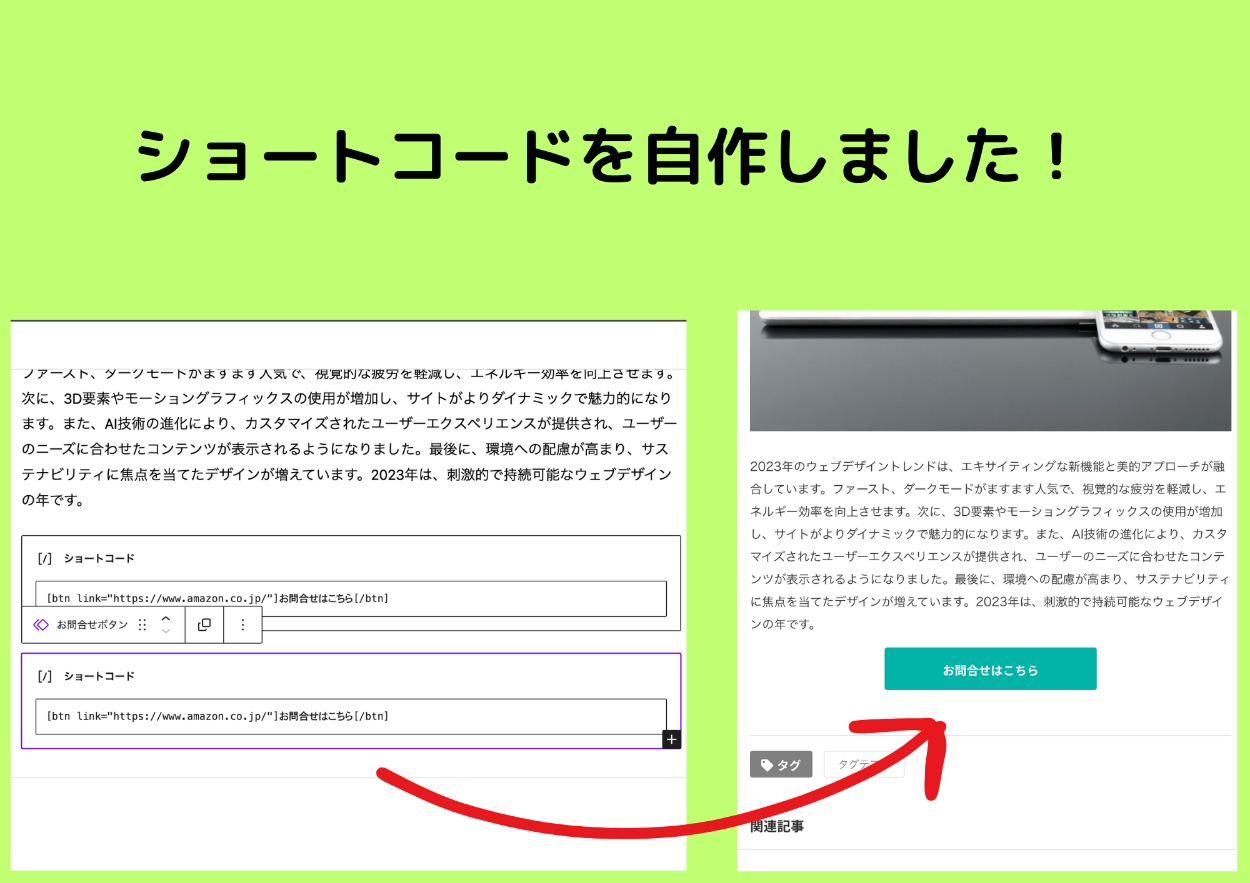 - ショートコードを自作し管理画面からお問合せボタンを追加することができるようにしました!