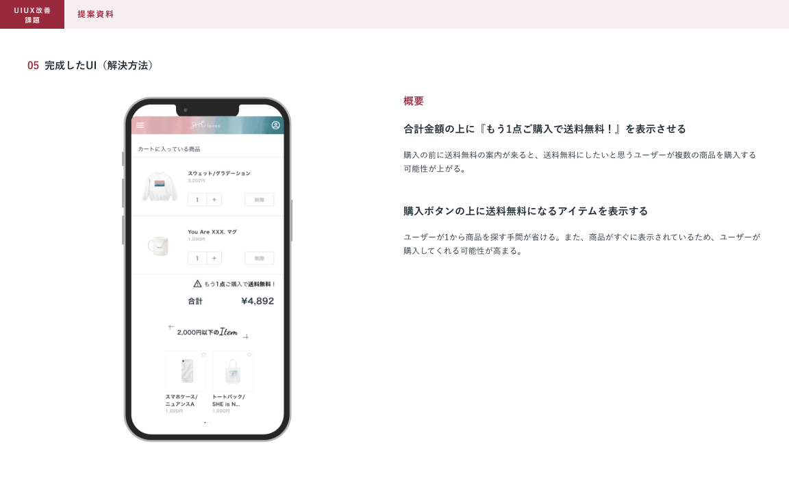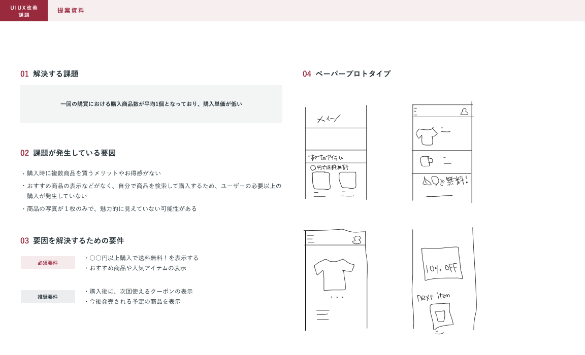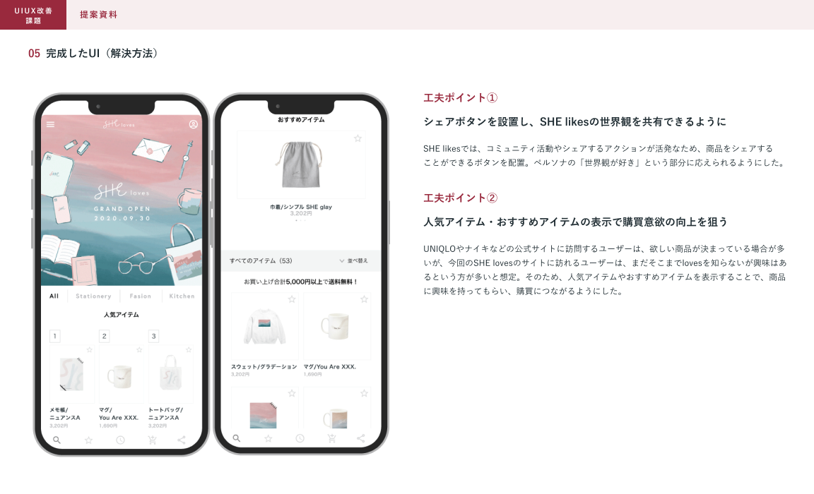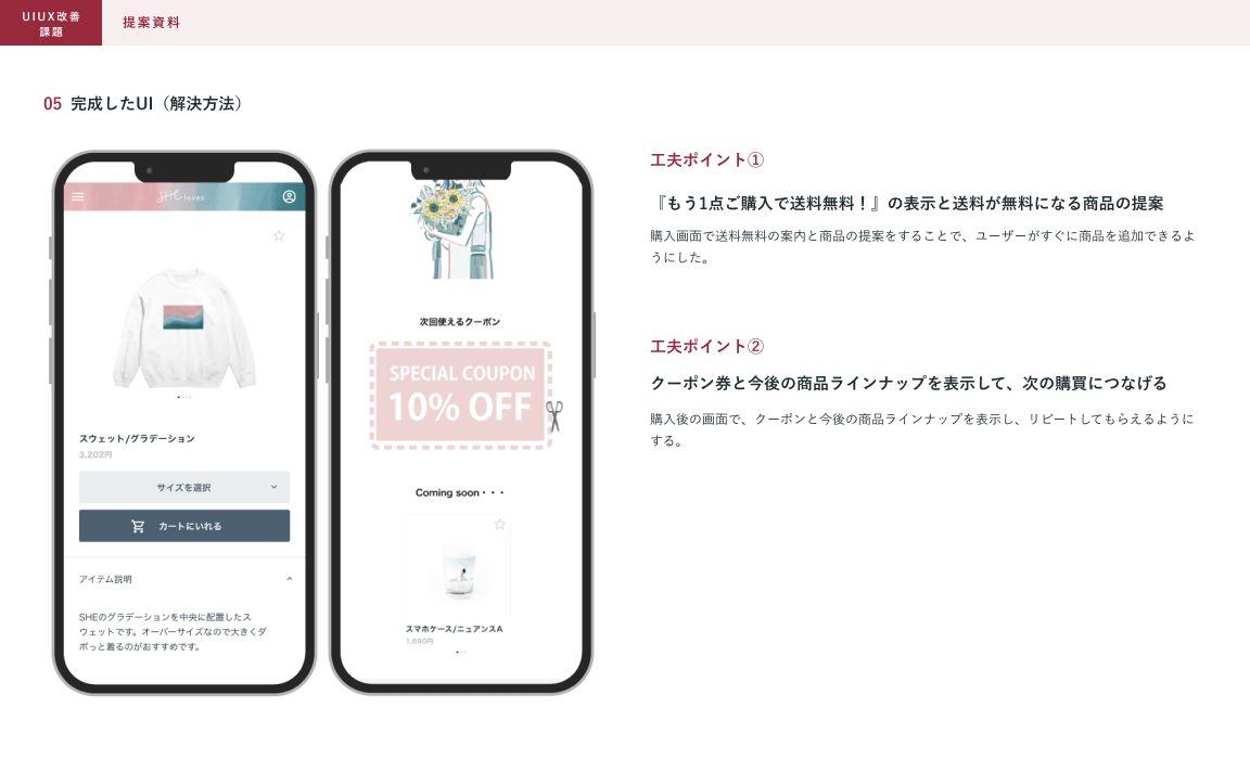 UI/UX改善提案課題に取り組みました。ペーパープロトタイプ、Figmaを使用したデザインカンプ、改善提案資料を作成しました。