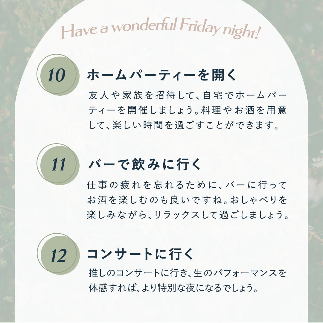 ・華金を英語で表現した言葉を装飾っぽく入れた。