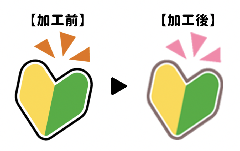 初心者マークはフリー素材を使用していますがバナーの統一感を出せるよう、黒枠→ブラウン、オレンジ部分→ピンクに加工しました。