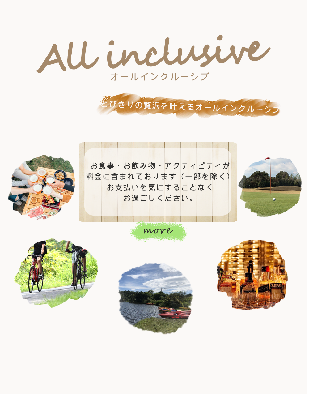 - 料金の追加なくアクティビティ等が楽しめる良さが視覚として伝わるよう、写真を多く入れた