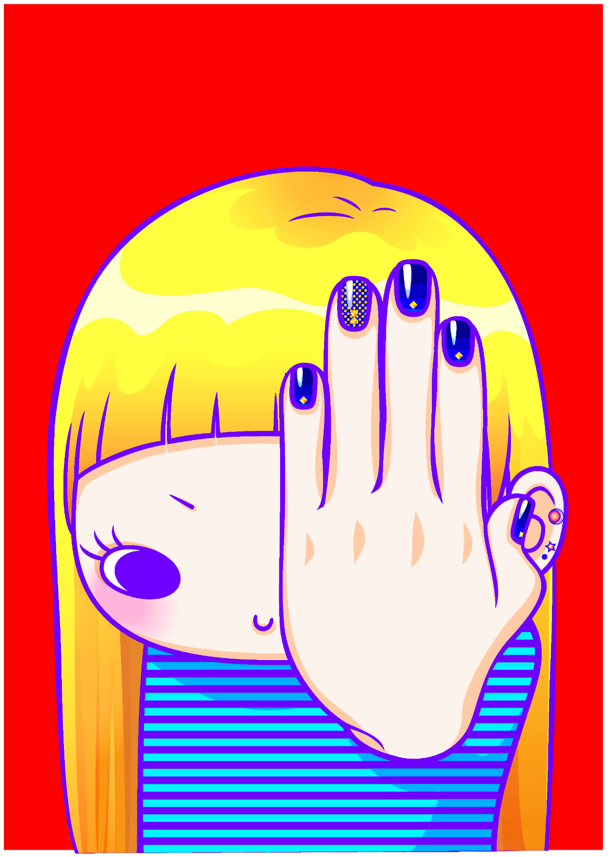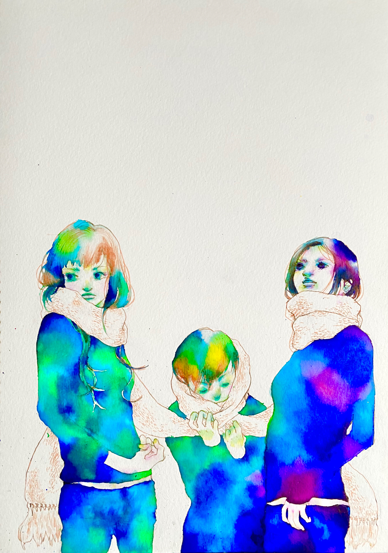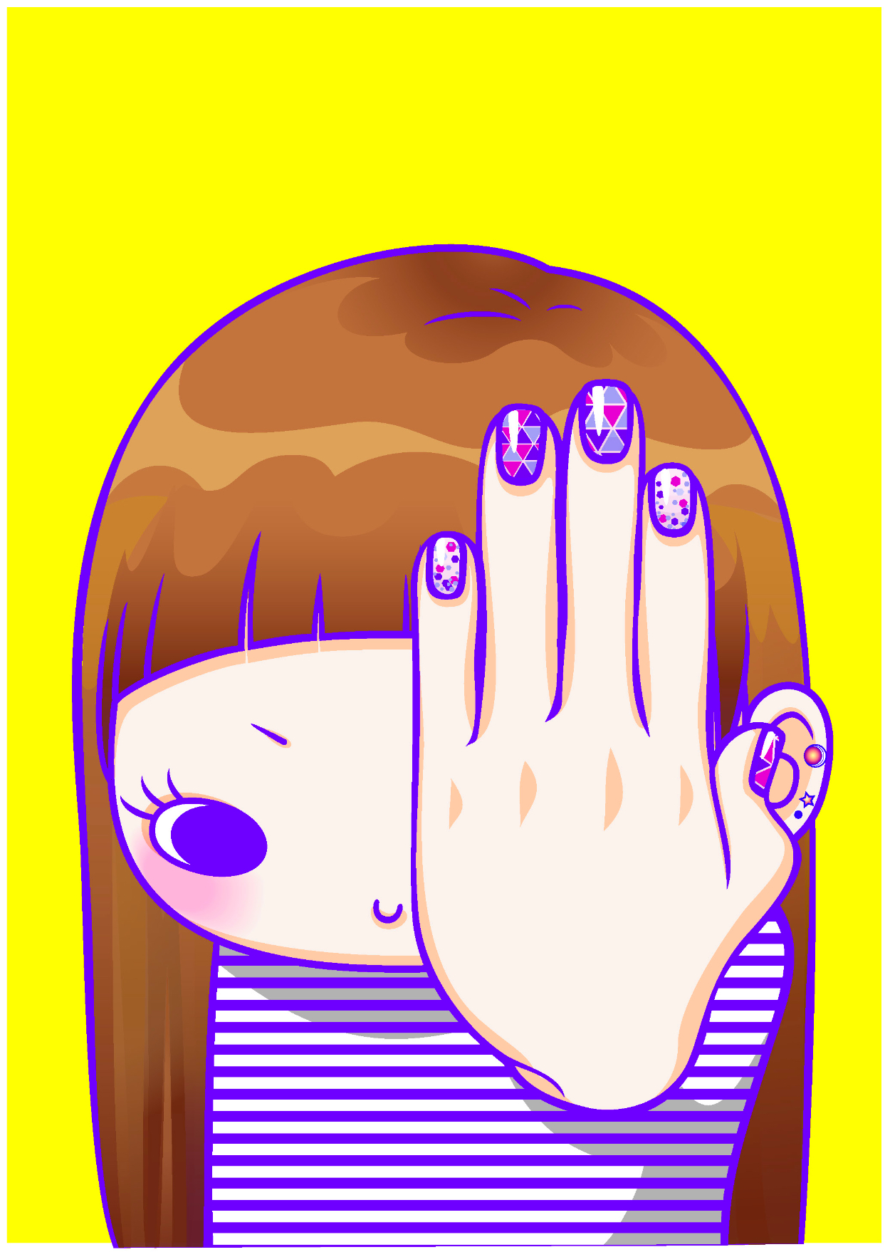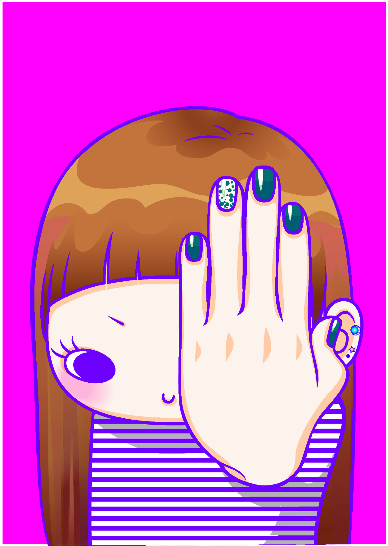 人物の手は、コンプレックスである自分の手をモチーフにしています。
