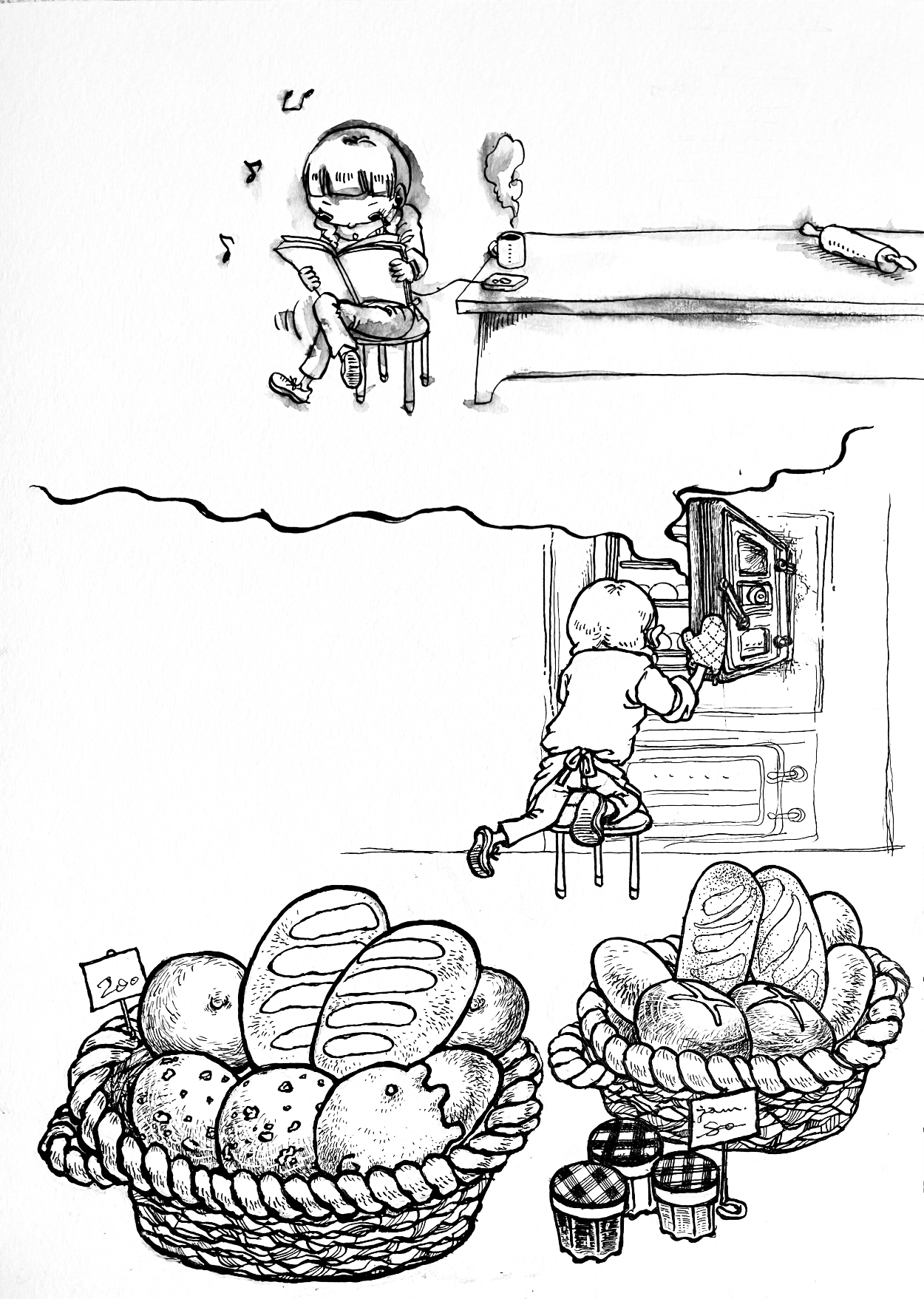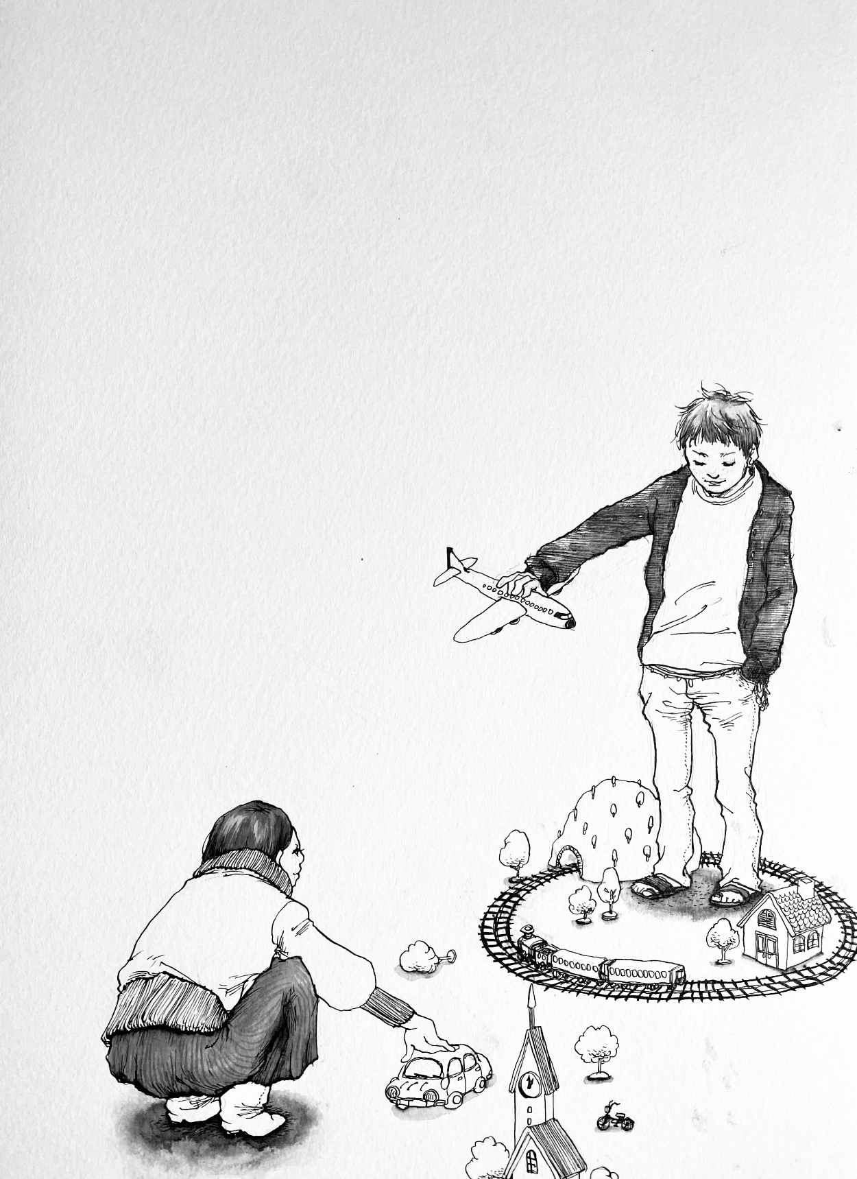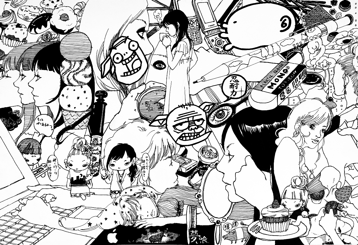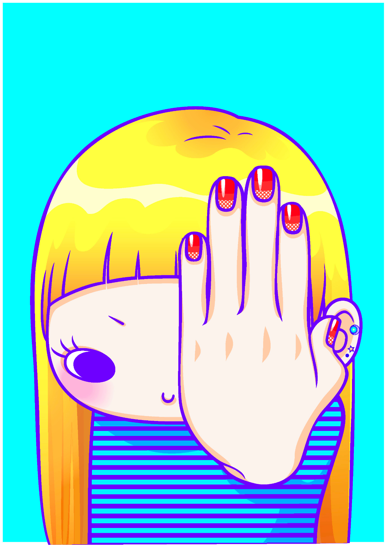 人物の手は、コンプレックスである自分の手をモチーフにしています。