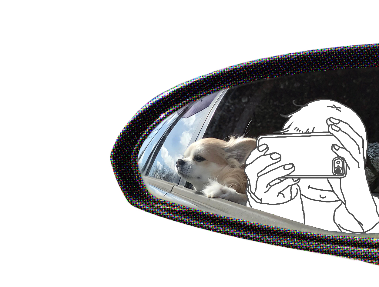 ペットのチワワと。車に乗っている時、開いている窓から外を眺めるのが好きな子でした。