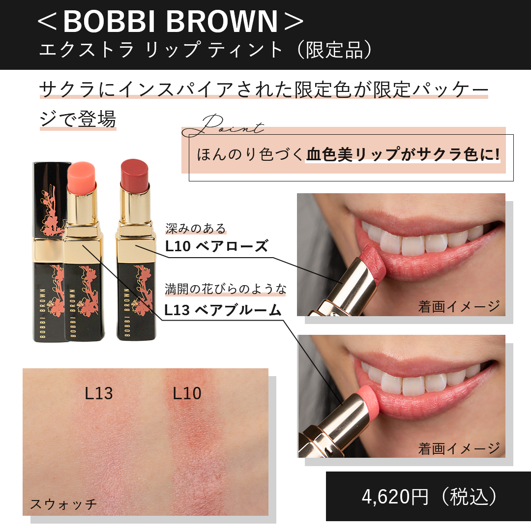 - カラーは基本の黒・白・グレーに、今回のコレクションは「サクラ」だったので落ち着いたピンクをプラスしました。(カラーはアイシャドウのカラーの雰囲気から選びました。)