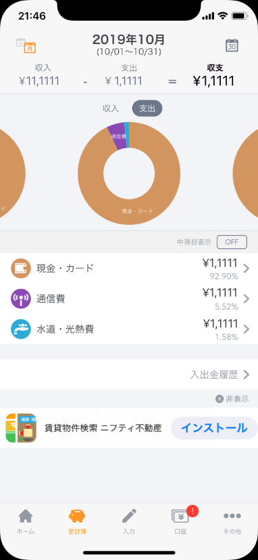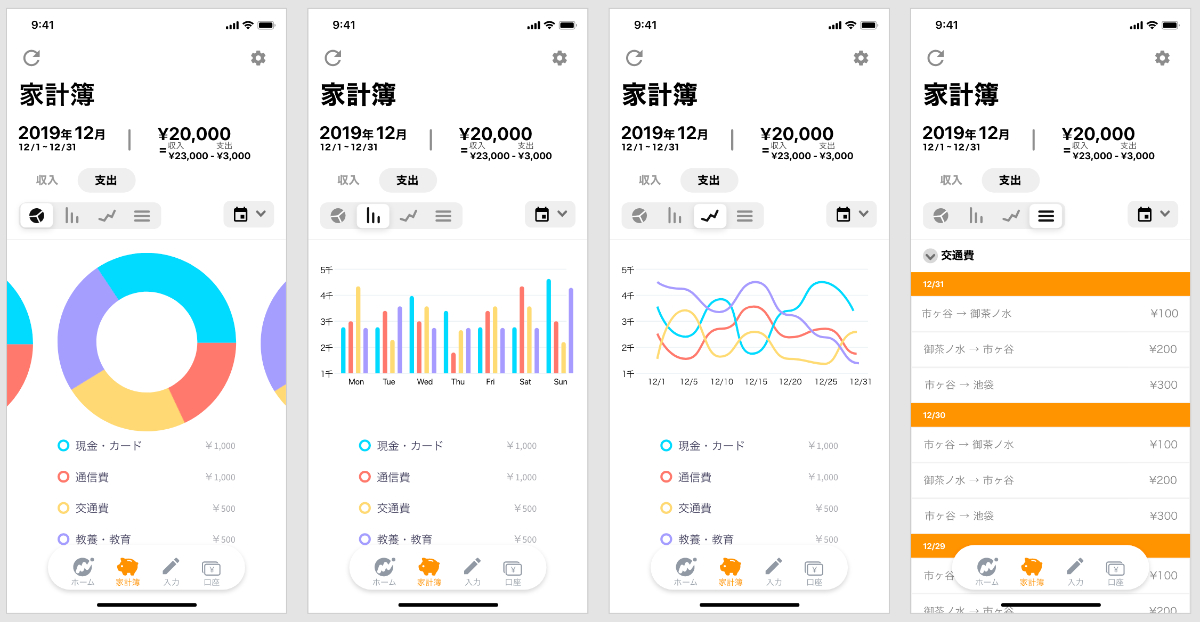 また、今回は下タブにある「家計簿」の画面のみ、UI設計の再構築をしました。