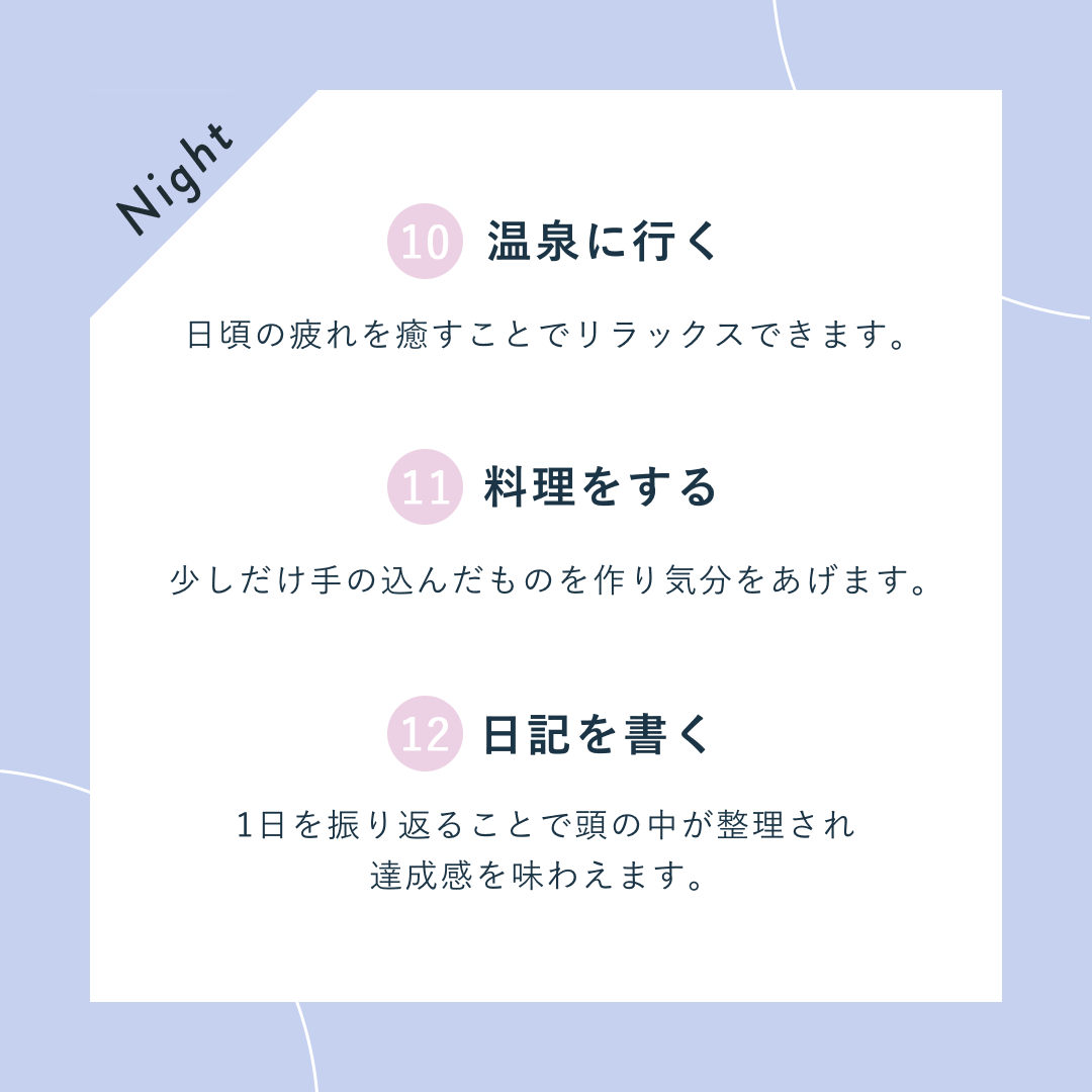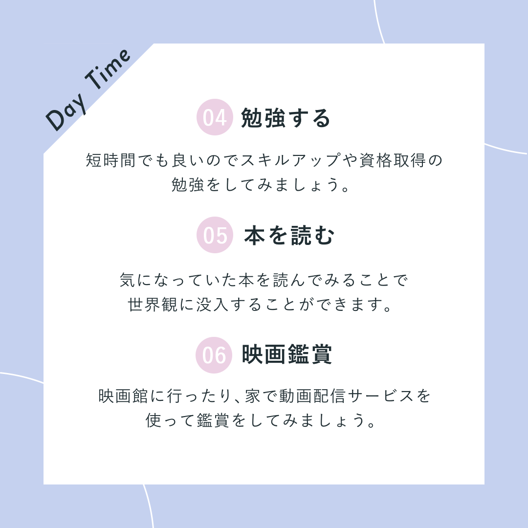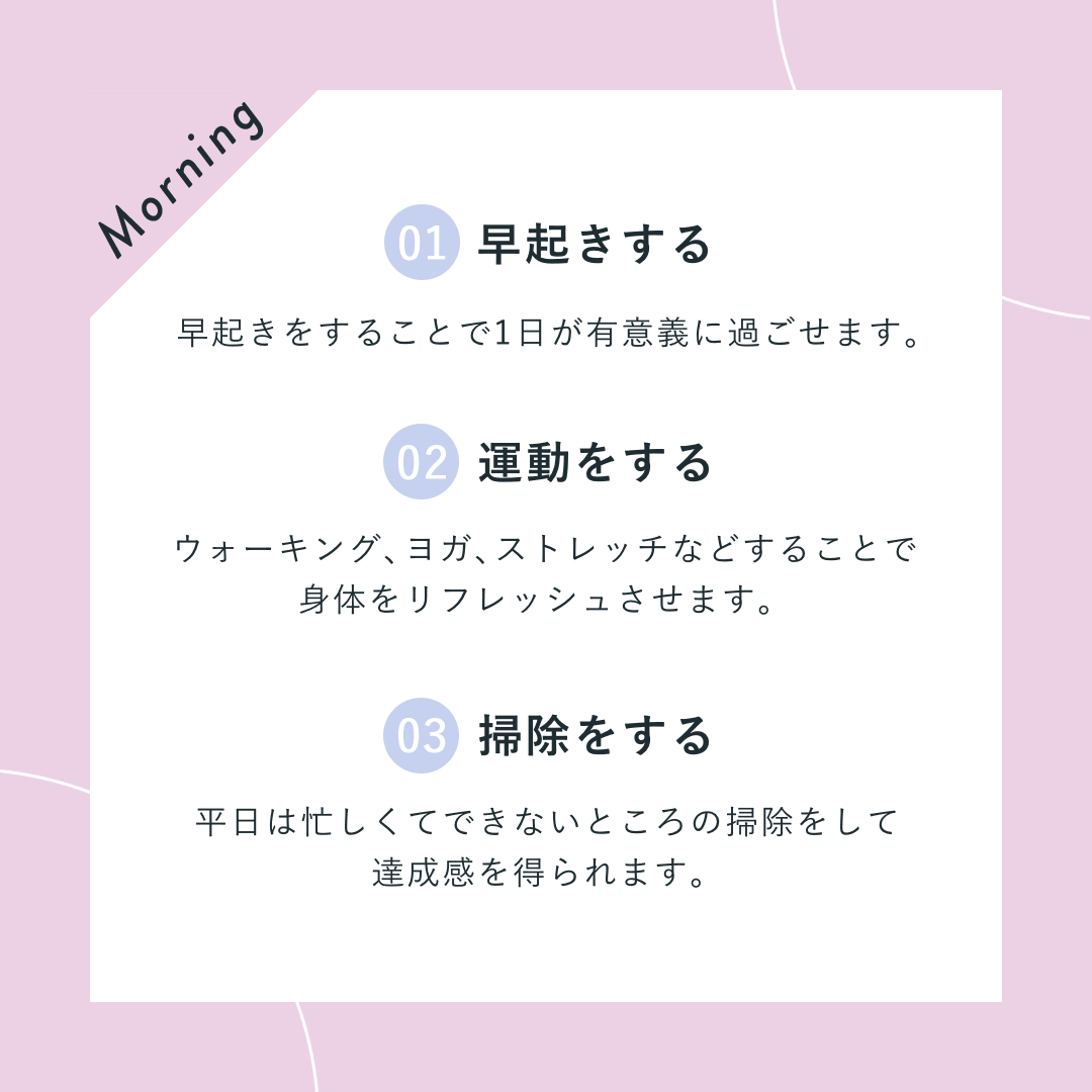 ④朝から夜の時間軸にすることや項目のタイトルを太文字にすることで可読性を意識しました。