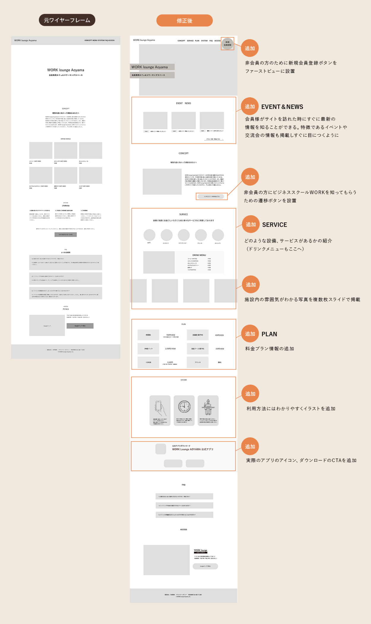 スクールの課題にて、クライアントからの要件書とワイヤーフレームを元に情報設計&ワイヤーフレームの再設計、PC版のデザインカンプの制作をしました。 (制作時間 2週間)