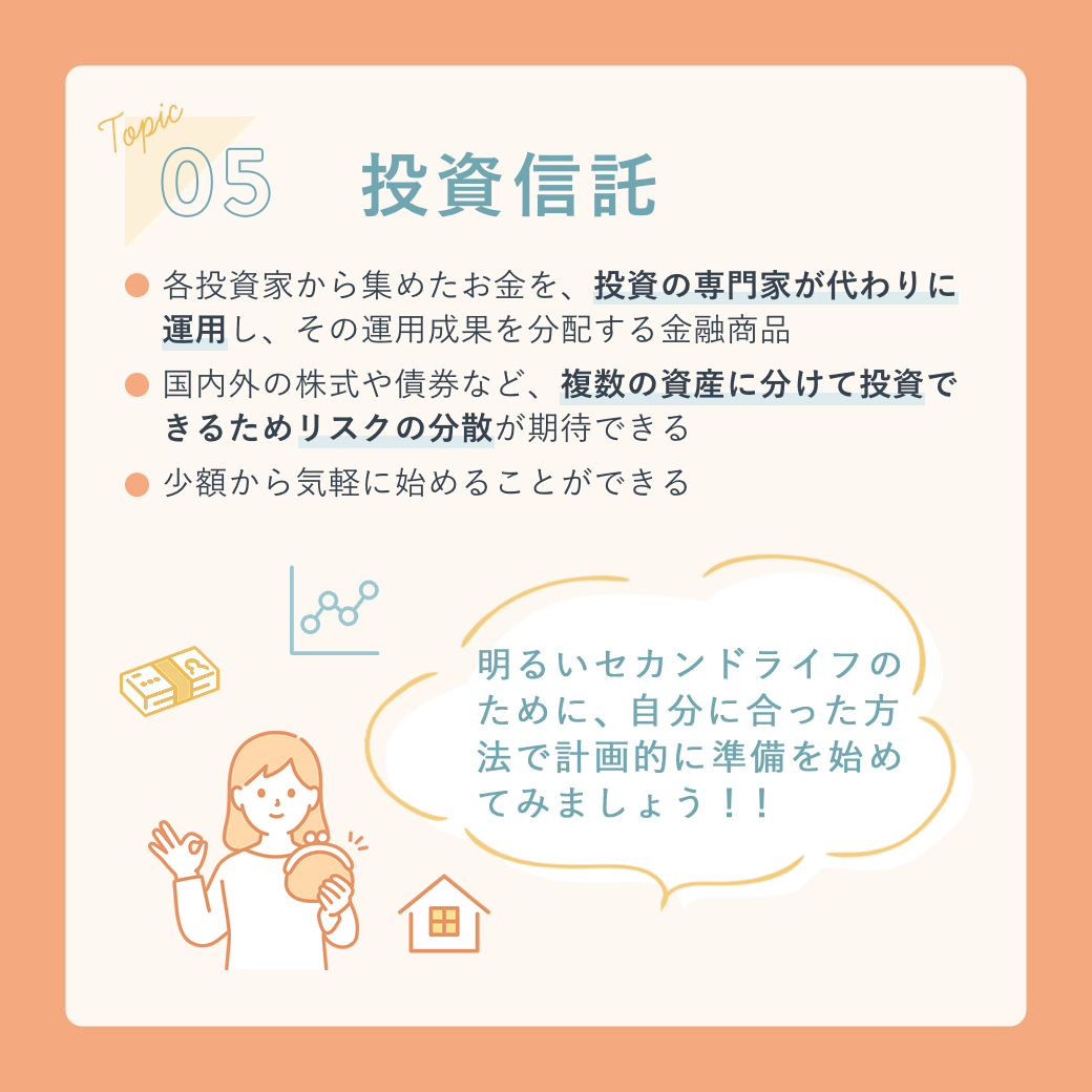 - 投資や積み立て、老後を連想するイラストを配置し、テーマについてイメージしやすいよう工夫しました。