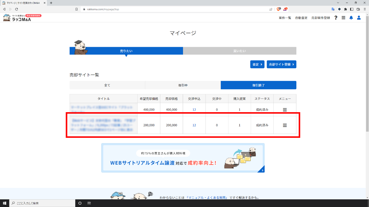 その後、12社の中から一番誠実なやり取りをしてくれた企業に20万円で譲渡しました。