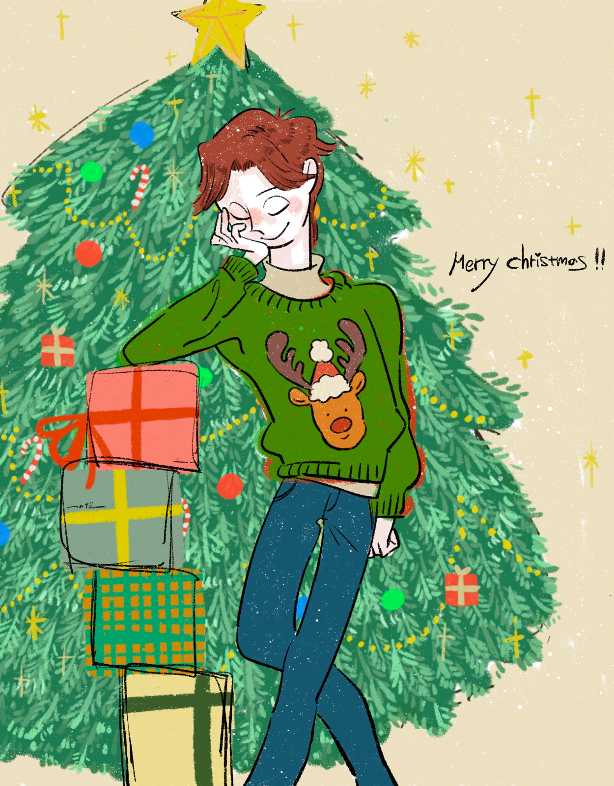 全体的に暖かい配色で、12月の寒さとは裏腹に部屋の中の安全で暖かい印象をイメージしました。