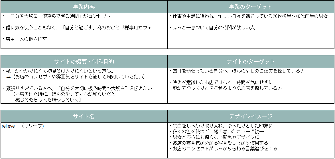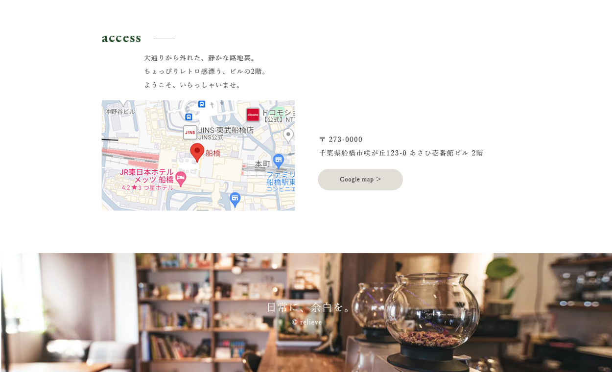 おひとり様専用カフェ「releve(リリーブ)」ホームページ