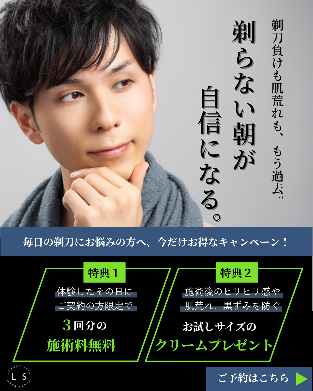 【架空案件】メンズ医療脱毛サロン予約誘導バナー