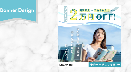 ・キャンペーン情報を長方形で囲むことで、1枚目よりも少し高めの年齢層に合わせた安定感のある印象にまとめました。