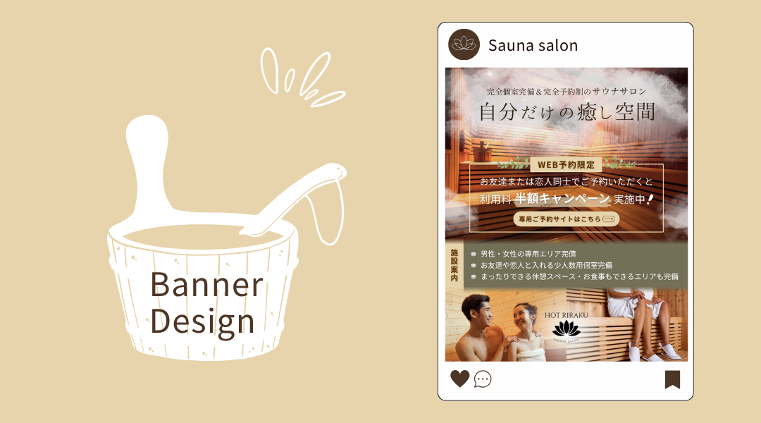 その他の希望:サウナサロンのためリラックスや落ち着き感のある印象のバナーをお願い します。