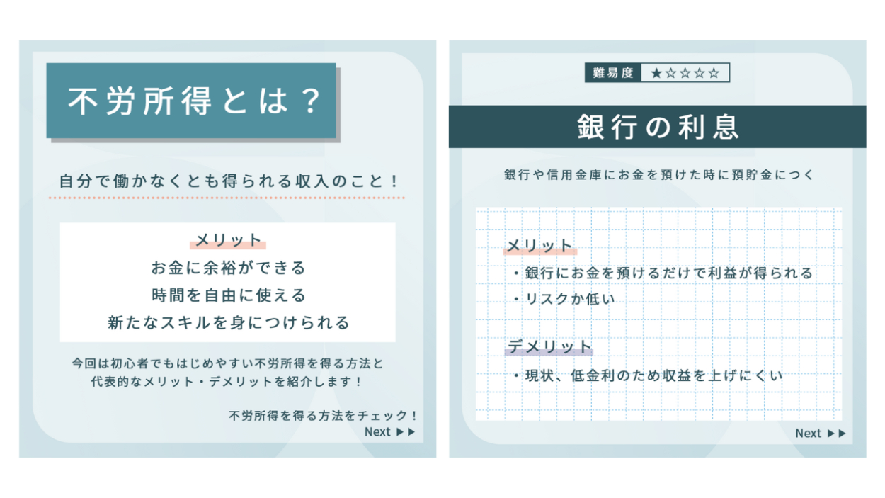 ・お金の話なので重くならないように、ブルーをメインに爽やかな印象を心がけました。