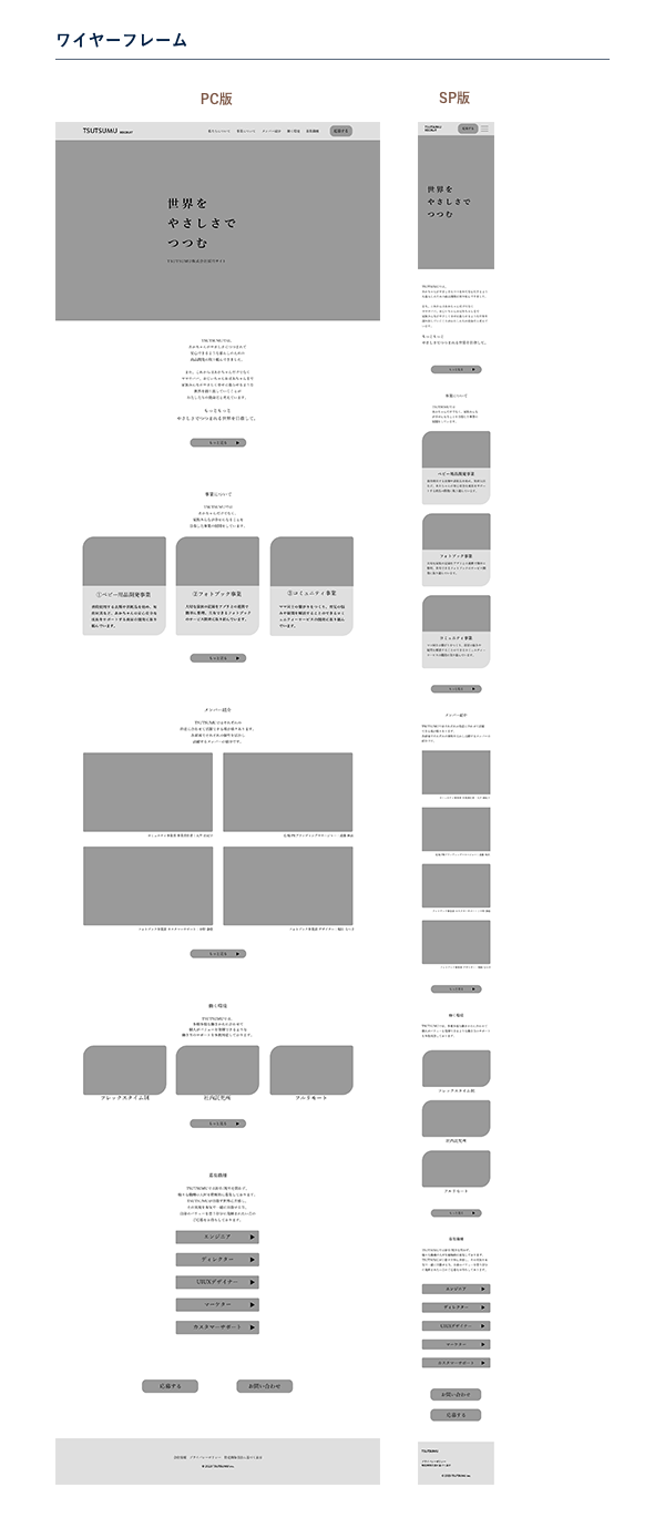 - ワイヤーフレーム作成、デザインカンプ作成、コーディング、とWeb制作のサーバーアップまでの制作を初めて実施し、デザイン性と実装の連携を考慮したLP作成の手順を学んだ
