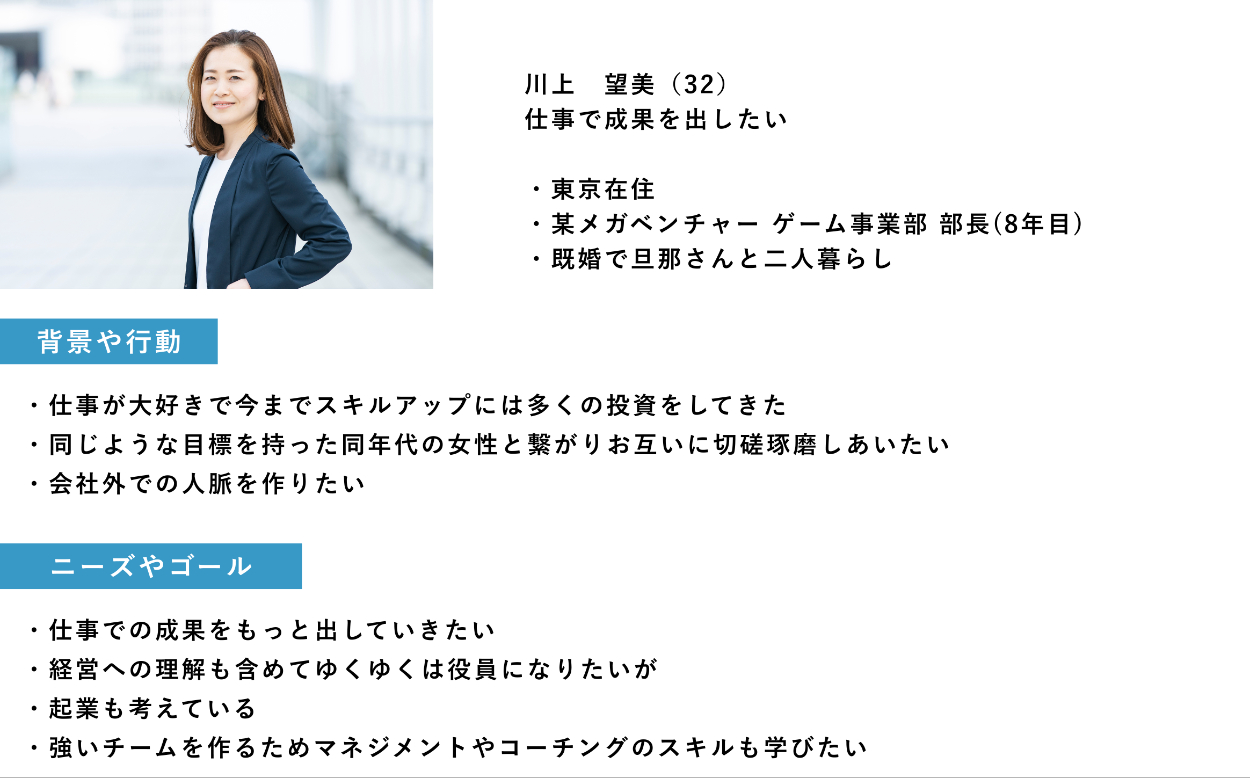 ペルソナ像は「向上心が高く芯のある女性」。可愛らしさに寄りすぎないよう装飾は控え、線のあしらいで上品さやしなやかさを表現しました。