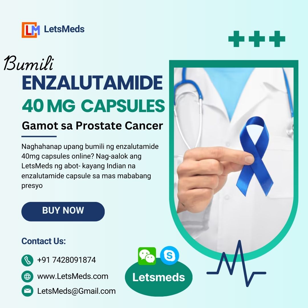 Take charge of your prostate cancer treatment today. Contact LetsMeds for Enzalutamide capsules 40mg price, enzalutamide capsules wholesale price Manila, and affordable generic Enzalutamide price options in Manila. Get your medication delivered to your doorstep with ease!