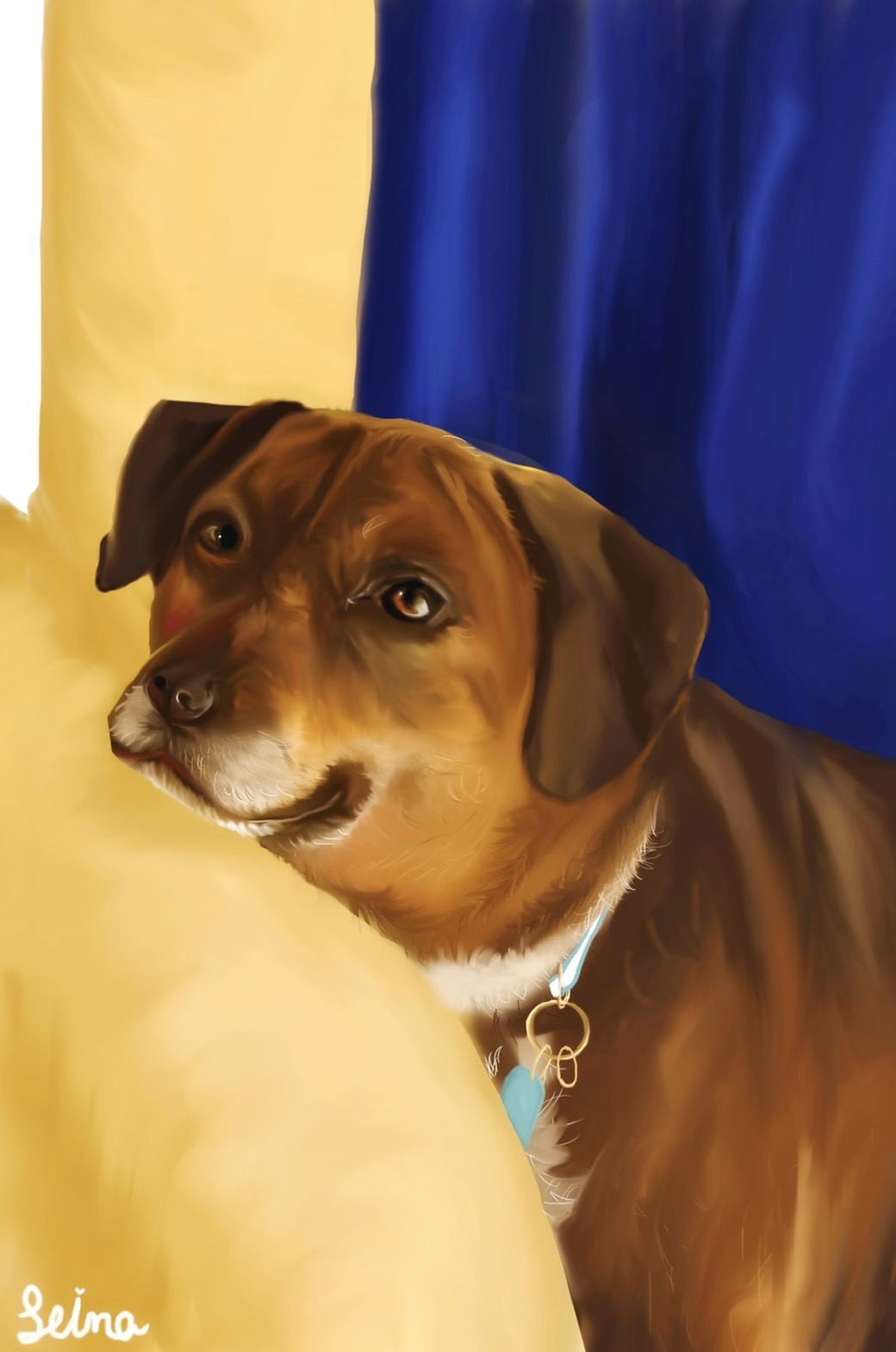 ご依頼主のご実家で飼われているミックス犬を描かせていただきました。
