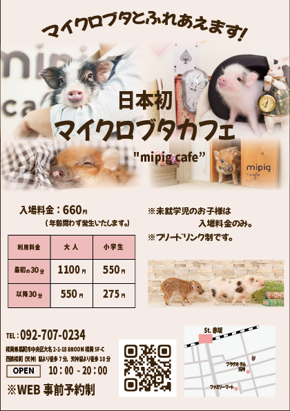 mipig cafe 福岡店の店舗概要(簡易地図を作れたらぜひ)、料金