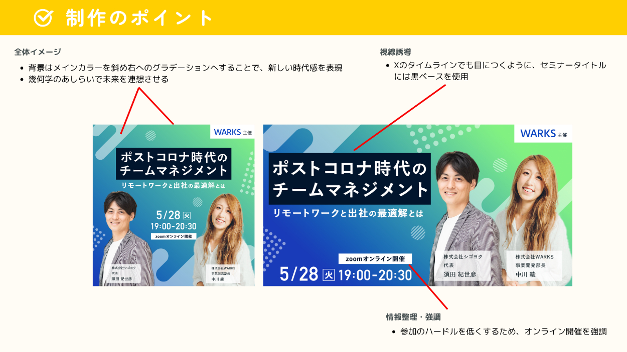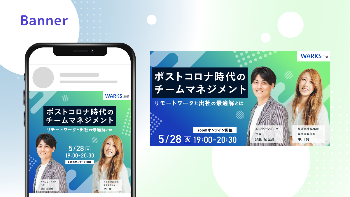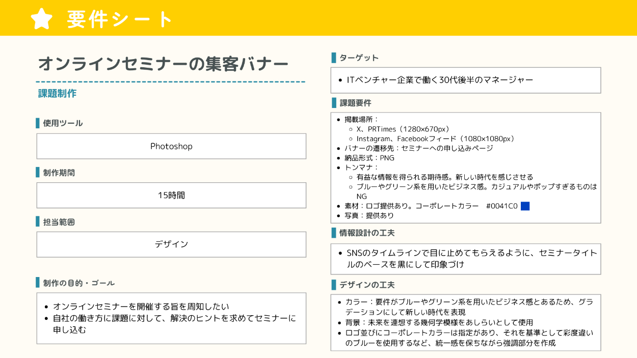 架空のオンラインセミナーの集客バナーを2つのサイズ形式で作成しました。※課題に登場する企業、サービス、人物は全て架空のものです。2025.5