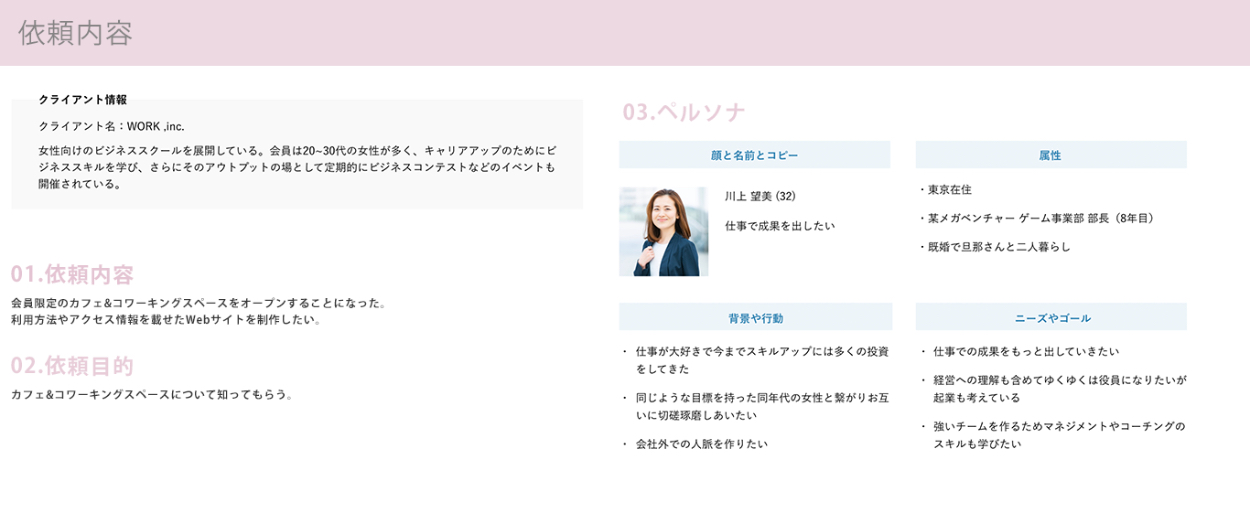 クライアントとペルソナの情報+自分が使う立場になって考えてみました。