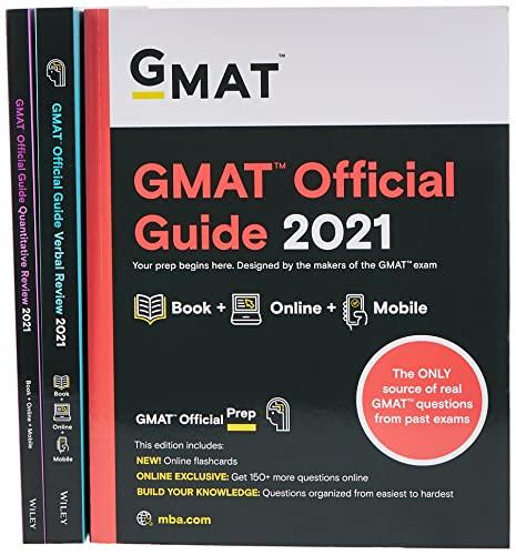 GMAT Official Guide 2021 BundleBest value! Get all three guides in one bundle: GMAT Official Guide, Verbal and Quantitative Review Study with confidence. All GMAT Official Prep products are the only prep resources containing real GMAT questions from past exams. It’s why we are official.Get the ultimate collection with 1,895 real GMAT practice questions with answer explanations?PLUS the online tools you need to study the way you want including:New! Review with online flashcards to master key conceptsCreating your own practice setsFilter by fundamental skill and difficulty levelTrack your improvements with performance metricsStudy in exam mode so that you are prepared for test dayPractice on the go with the mobile app! Even if not connected to the internet.You’ll receive the most extensive study prep to prepare you for test day:An overview of the GMAT exam to become familiar with the content and format.Learn what is?and isn't?tested on the GMAT exam.Questions organized from easiest to
