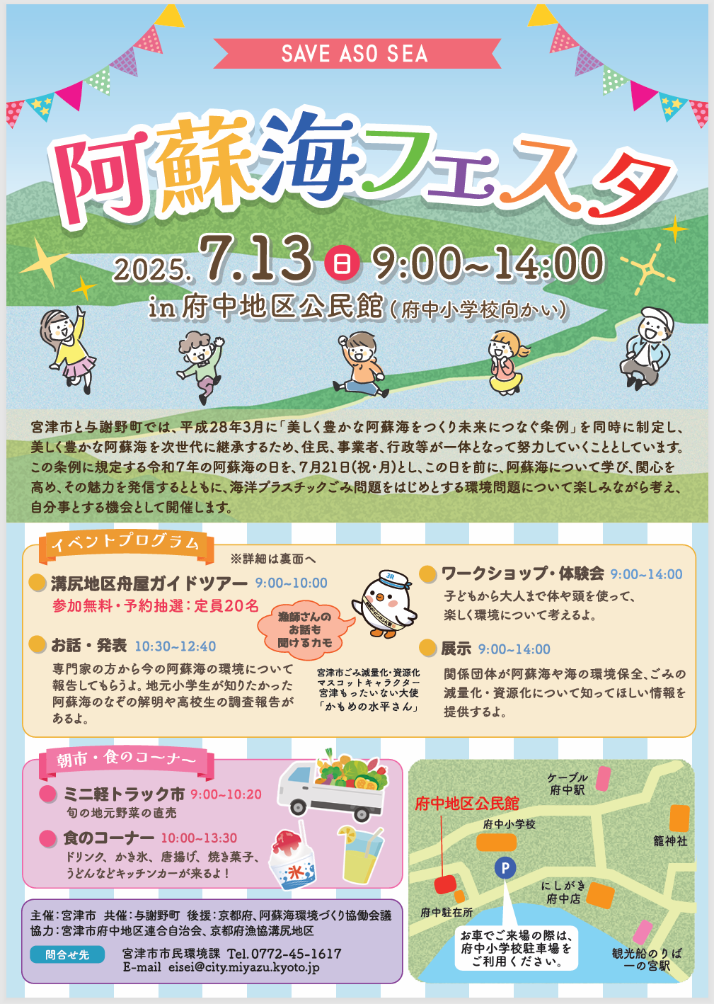 宮津市役所さまより、「阿蘇海フェスタ2025」のチラシ作成のご依頼があり裏表のチラシを作成いたしました。