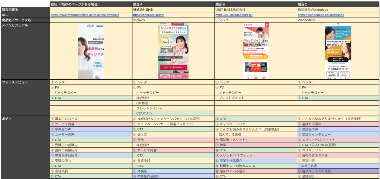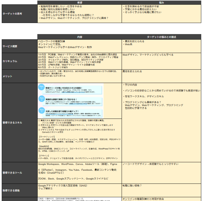 ✅ ワイヤーフレームを作成するにあたって自社の強みやサービスを整理する工程を追加。