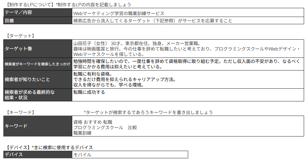 申込数アップのための施策の一つとしてLP改善を提案することを想定。