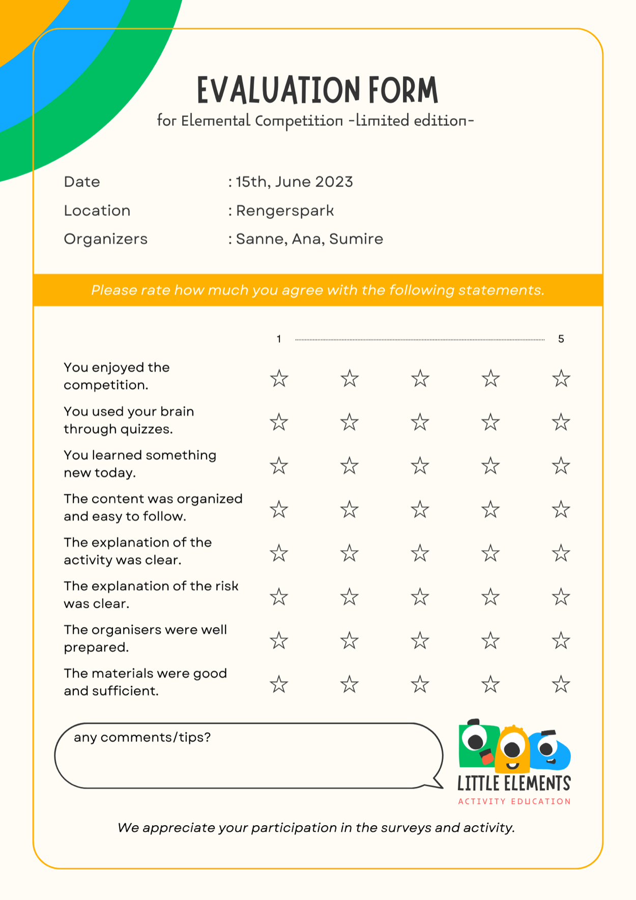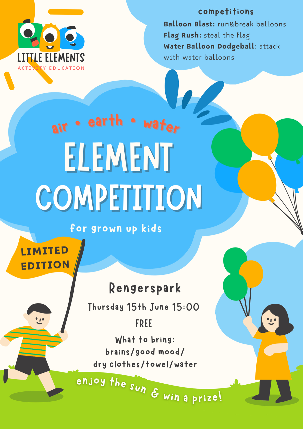 実際にアクティビティで使用するバルーンや旗、水などの要素を取り入れることで当日のイメージが湧きやすいよう工夫した。